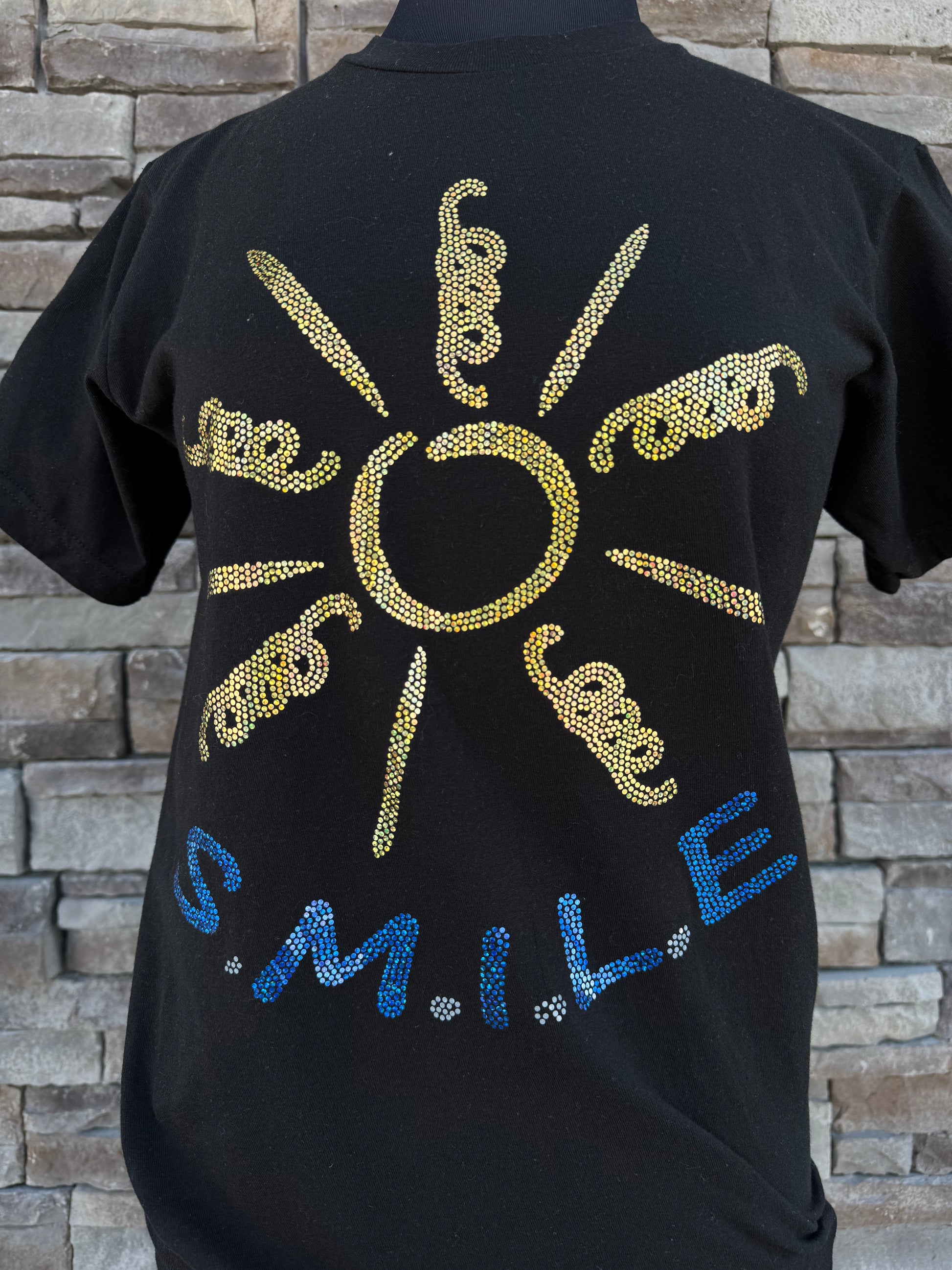 Soft crew neck sweatshirt with a S.M.I.L.E. that sparkles!